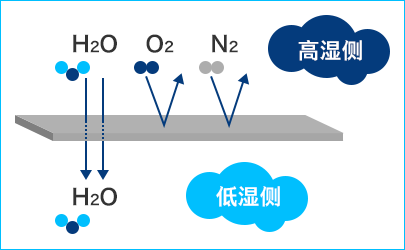 此外,由于是非多孔膜,水蒸氣以外的氣體成分幾乎都不會透過。