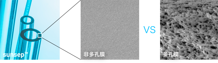 sunsep™通過采用表面無孔的“非多孔膜”,除水蒸氣以外的氣體幾乎都不會通過。